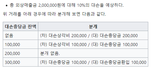 - 대손충당금 無 : 차) 대손상각비 / 대) 매출채권