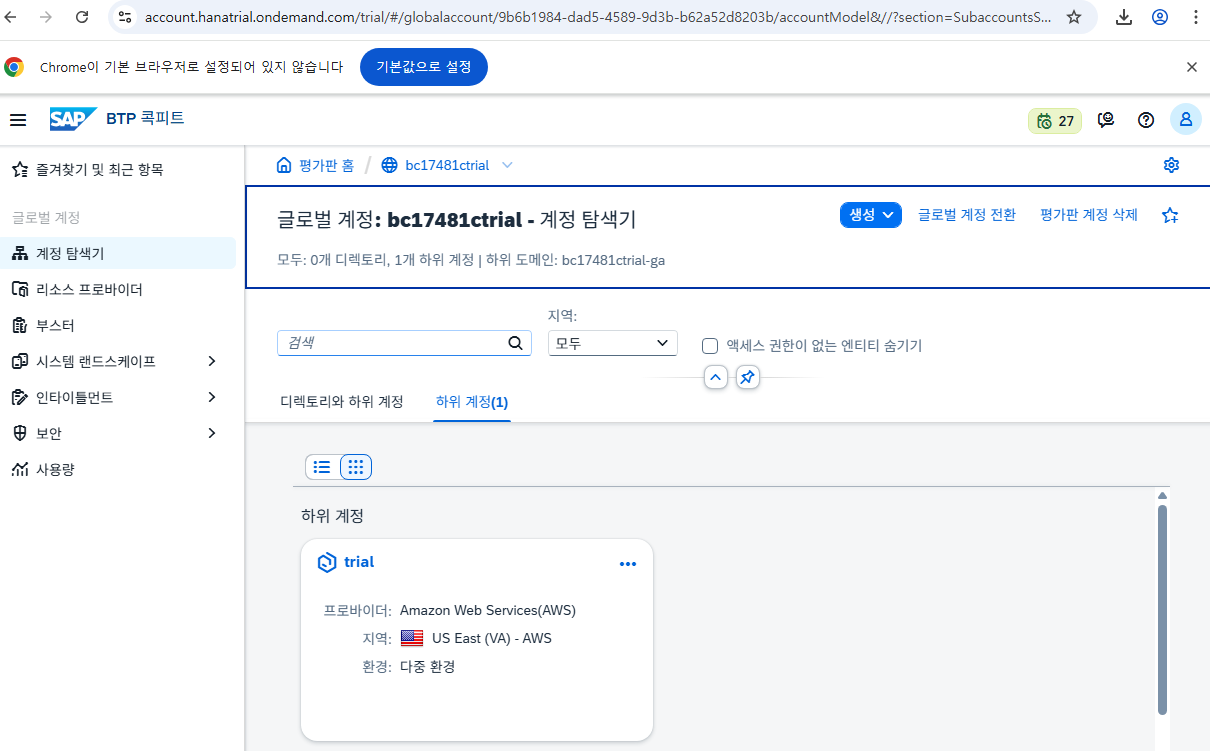 https://account.hana.ondemand.com/ 에 접속하여 로그인한다.