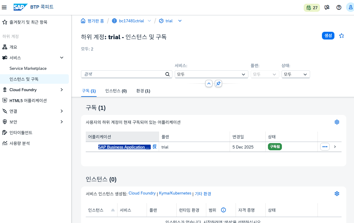인스턴스 및 구독 -> 어플리케이션 클릭했을때 아래 화면이 떠야함
