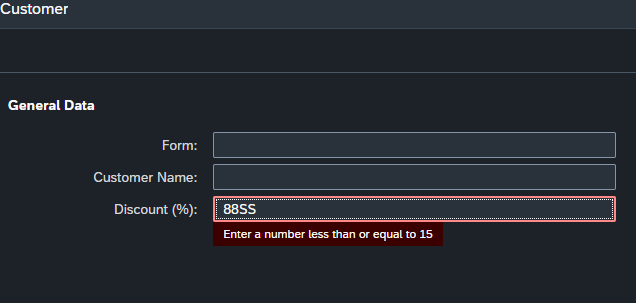 다음은 잘못된 값 입력 시 SAP UI5가 자동으로 검증을 하도록 도와주는 설정입니다.