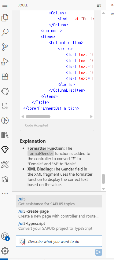/UI5 치면 위처럼 연관 키워드가 나오는데 그걸 치고 질문을 해야 한다.