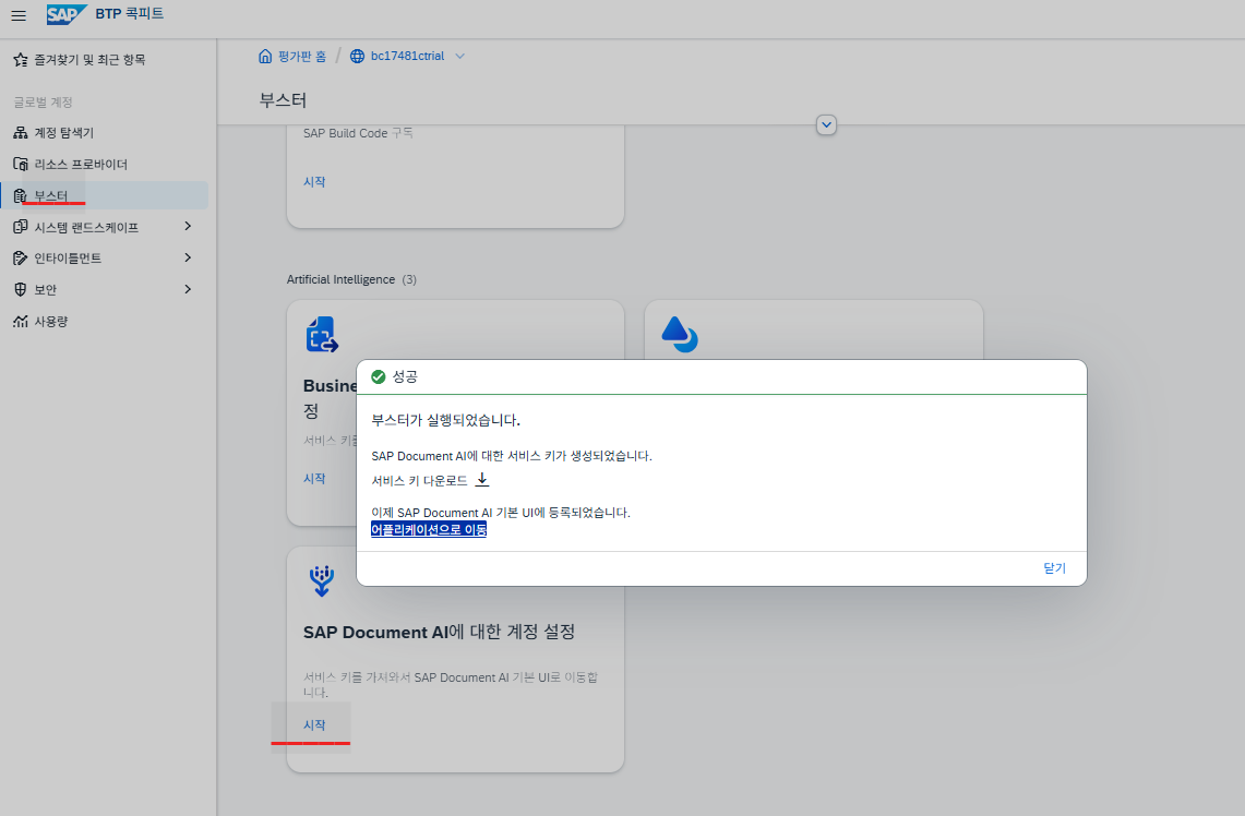 SAP BTP에서 SAP Document AI 서비스를 생성하고 연결(바인딩)