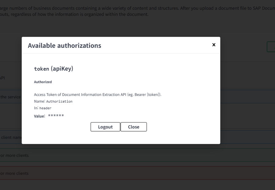 SAP Document AI의 Swagger UI (OpenAPI 문서 화면)