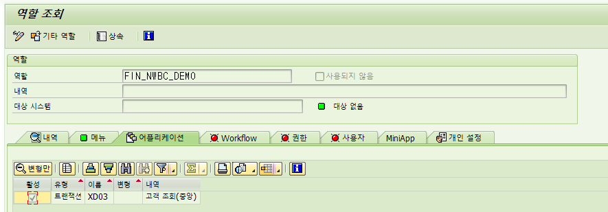 아래 예를 보면, 트랜잭션 XD03의 경우는 역할에 할당되었지만 BP 트랜잭션으로 대체된것을 확인할 수 있다.