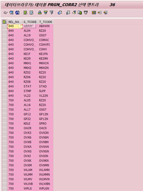 위에 메뉴자동조정을 클릭하면 SAP 백그라운드에서 이전 트랜잭션을 제거하고 새 트랜잭션을 대체합니다.