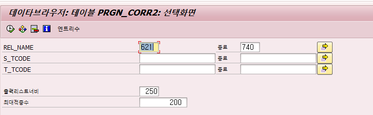 620릴리즈에서 752 릴리즈로 이동하는 경우 해당 항목을 테이블에 검색하면 이렇게 나온다.