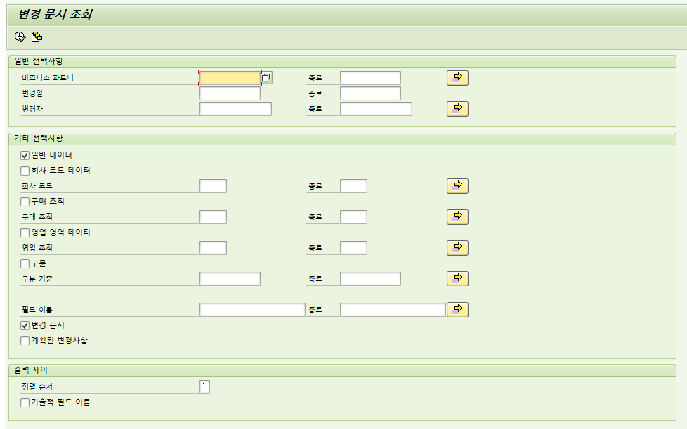 변경일자나 파트너 번호를 입력하고 조회하면 됨.