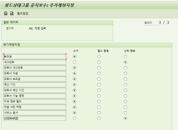 IMG -> 재무 회계(신규) -> 재무 계정 기본 설정(신규) -> 원장 -> 필드 -> 고객 필드(OXK3)