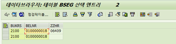 7단계 : BSEG의 ZZHR 필드에 값이 저장된것을 확인할 수 있음.