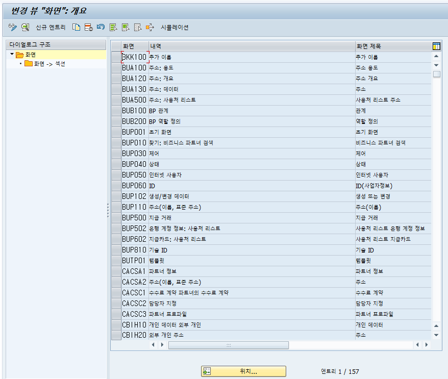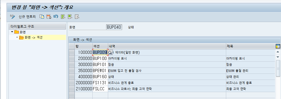 We can find out all the standard and custom screen names, select the required screen name, here BUP060 and then click the Screen->section