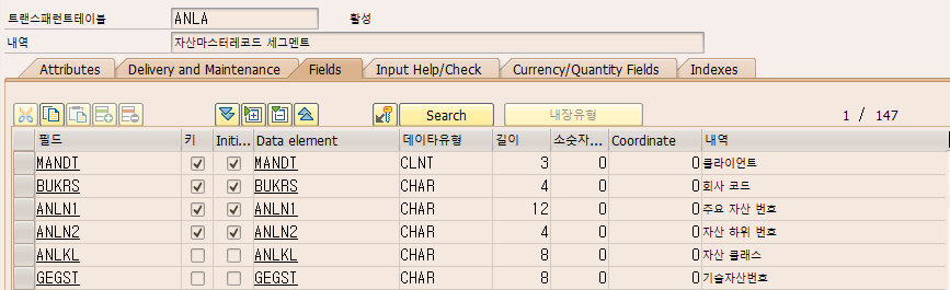 자산마스터의 key 값은 자산번호, 자산 하위번호, company code 입니다.